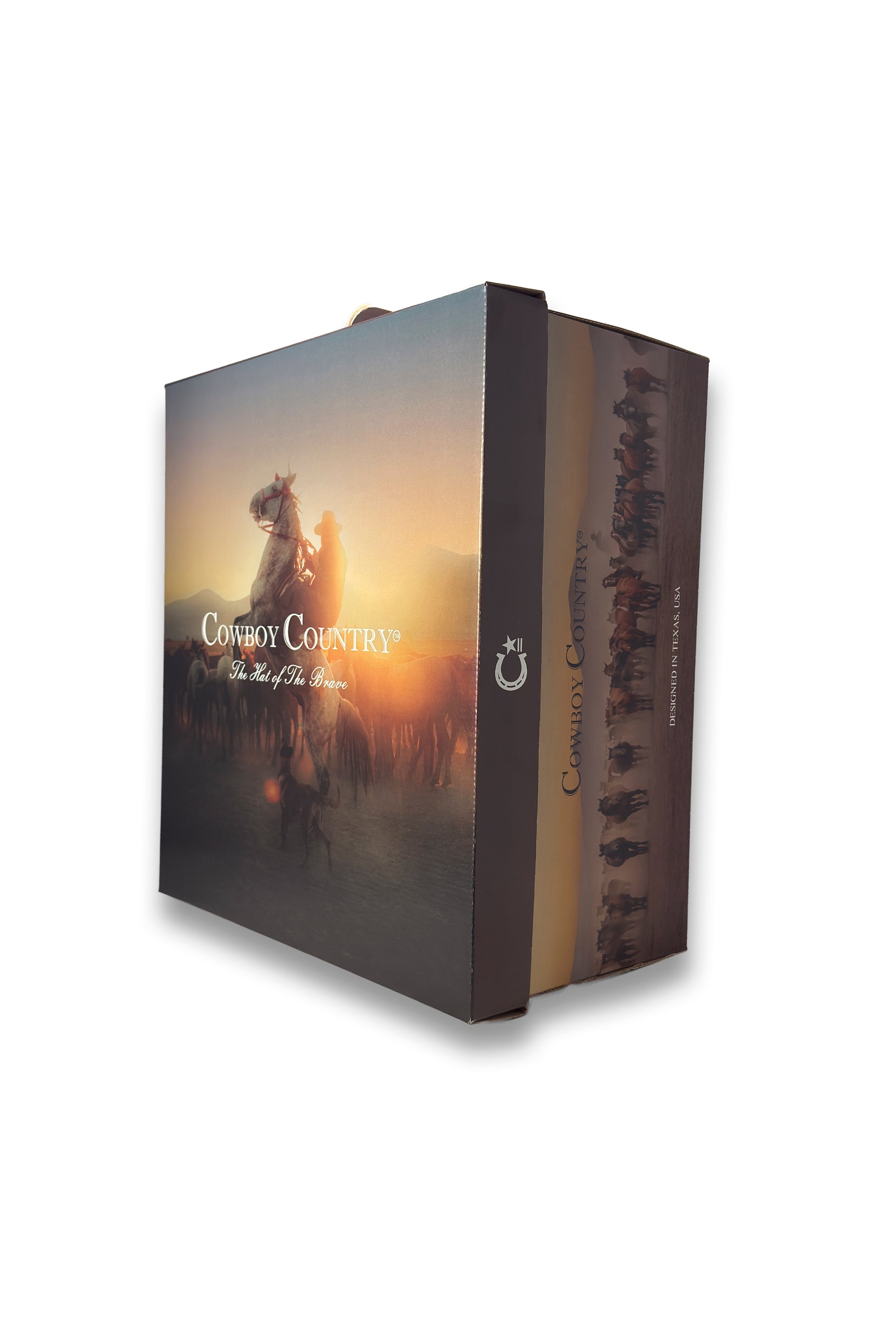 Crafted from premium felt, this hat features a traditional rancher profile with a clean finish and a detailed buckle set. The interior includes a comfortable sweatband and custom lining that reflects Cowboy Country’s rugged identity.